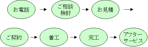 ●サービスその1 スピード見積(ご連絡頂いたら即対応・見積3日以内) ●サービスその2 納得契約(ご契約前に徹底してご納得頂くまで打合せ) ●サービスその3 責任施工(当社の担当者が引渡まで責任もちます。丸投げ工事は致しません) ●サービスその4 工事着工前のご近所挨拶まわり ●サービスその5 アフターサービス(年3回のメンテナンスはがき・定期的なアフターフォロー)